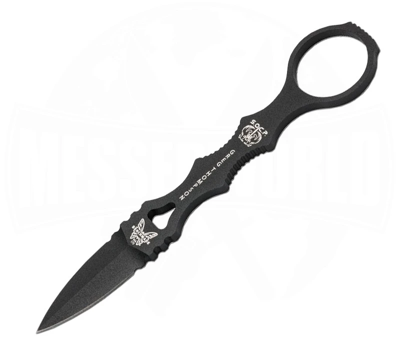 Das Mini SOCP Dagger Single Edge ist der kleine Bruder des SOCP Daggers der allseits bekannten und beliebten Firma Benchmade aus den USA. Mit einer Gesamtlänge von 15,6 cm kann das feststehendes Dolch-Messer unkompliziert getragen werden und liegt gleichzeitig bequem in der Hand. Nicht zuletzt wird das Handling auch durch den ergonomisch geformten Griff auf ein ganz anderes Niveau gehoben. Designed wurde das kleine Schmuckstück vom Messermacher Greg Thompson, der auch schon die größere Version entwarf. Das Ganzstahlmesser ist einseitig geschliffen und besteht komplett aus 440C Stahl, welcher zusätzlich noch schwarz beschichtet ist. Anbei wird eine Molle-kompatible Kunststoffscheide mit J-Hook und Lederpad dazugeliefert.